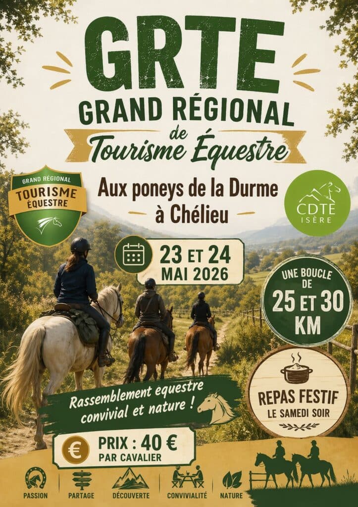 Le Grand Régional de Tourisme Équestre dit « GRTE » est un ensemble de rallyes ou rassemblements de cavaliers randonneurs et de meneurs se déroulant dans la région. Initié par le Comité National de Tourisme Équestre et sous l’égide de la Commission de Tourisme Équestre du CRE Auvergne Rhône-Alpes, le GRTE poursuit un nombre d’objectif majeur :